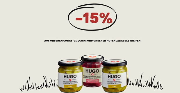Was passt besser zu Ihren besten Raclette-Käsesorten als unsere Curry-Zucchini und unsere roten Zwiebelstreifen, beide aus unserem Hugo-Sortiment. Profitieren Sie von 15 % Rabatt auf diese beiden Produkte!