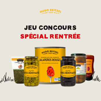 Gagnez un coffret savoureux avec nos câpres capucines, jalapeños rouges, olives vertes et noires dénoyautées, 2 squeezes de ketchup et un bocal de pickles de raisins au miel et à la cannelle.